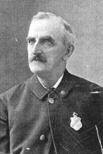 Service: Sergt. - Res. Stoughton ; farmer; 32; enl. and must. June 26, 1861 ; apptd. 1st Sergt., date not shown ; comm. 2d Lieut., June 24, 1862; comm. 1st Lieut., March 9,1863; comm. Captain, May 11, 1864; must, out July 8, 1864, as Captain of Co. "G". Born at Woodstock, Maine June 3, 1829; died at Roxbury, Mass. May 25, 1894. Buried at Evergreen Cemetery, Stoughton, Mass.