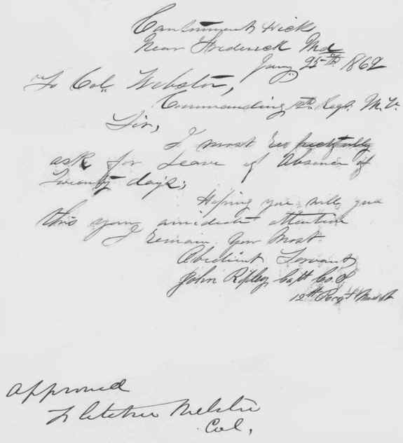 Letter from Capt. John Ripley to Col. Fletcher Webster - January 25, 1862