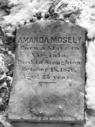 Inscription: Amanda Mosely, / Born a Slave in / Virginia. / Died in Stoughton / October 18, 1870. / Aged 25 years.